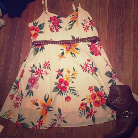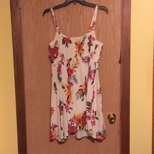 Super cute and feminine floral dress. Hits about the knee, and comes in at waist to accentuate figure. Adjustable straps, stretchy back panel. Very flowy and cute.