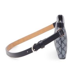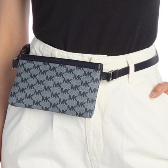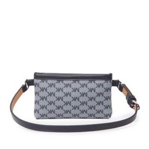 Michael Kors belt fanny bag. MK logo print in navy blue. Genuine (faux) leather