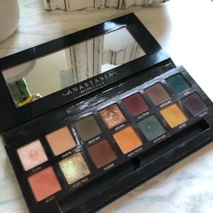 Anastasia Beverly Hills Subculture Eyeshadow Palette. Almost completely full. Beautiful colors ranging from mattes to highlight and metals. You can achieve many looks as I have in photo #1. Ask any questions. Has been sanitized with alcohol. Does not come with eyeshadow brush.