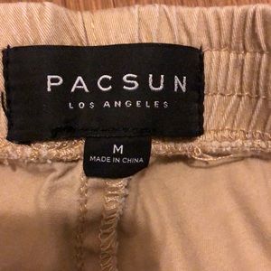 Like new men’s khaki pacsun shorts size medium. Shorts sit above the knees on person that is 5’6”.