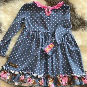 6/12 month with diaper cover. EUC. Stockings will be included free with sale due to the small hole as shown in the photo. These can be repaired/sewed. Lovely dress perfect for Fall/winter months.