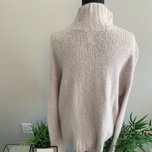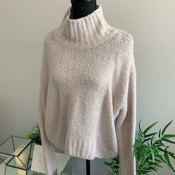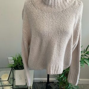 Super warm and cozy thick knit sweater. Slight high low hem. High neck. Loose fit. Can fit a variety of sizes (S-L)