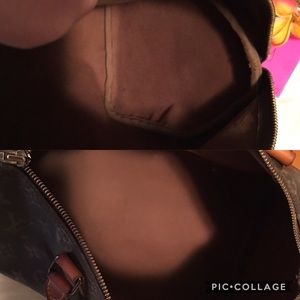 This is in great condition,straps shows some aging but has no cracks as well as the canvas.Inside shows some spots but it’s not that noticeable.Bottom edges shows some rubs pls see photos.Hardware is tarnishing, leather is in honey patina and shows some watermarks.