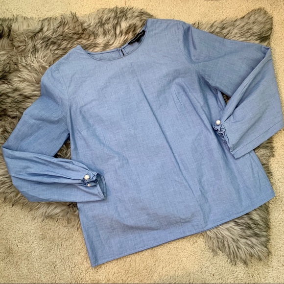 Cerulean blue blouse with pearl detail on sleeve. Excellent condition.