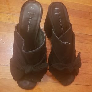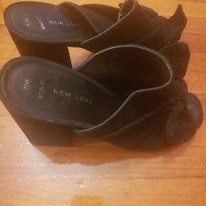 SOLD - 4 inches black suede mules. Size 9. Slighty Worn