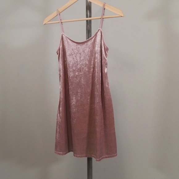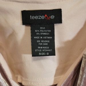 This is a blush covered velvety mini slip dress from Teeze me in a size 0. The straps are adjustable and there is extra fabric in the bust area. It was only worn twice so it is in perfect condition.