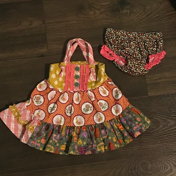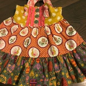 Matilda Jane “Thankful For You” knot dress size 0-3 month. Comes with diaper cover. Might be NWOT because I do not believe we ever got the chance to wear this before she outgrew it. Therefore it is either new without the tags?? Or in EEEUC?
