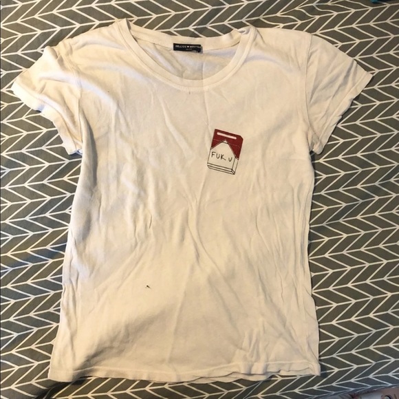 “Fuk u” cigarette pack graphic tee from Brandy Melville. Soft material, never worn. Not my style. No stains, tears, pilling, etc.