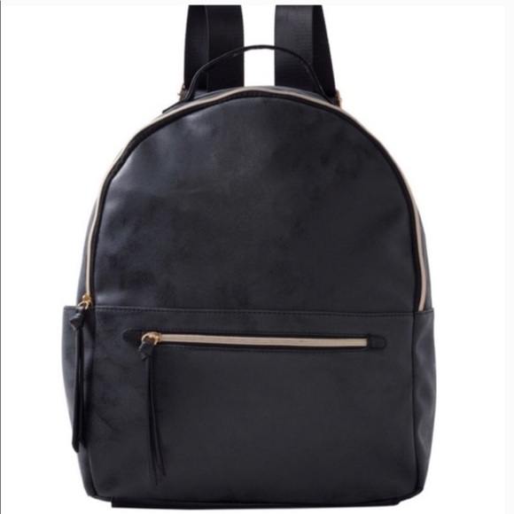 New Ulta Beauty Large Black Faux Leather Backpack with zip front pocket