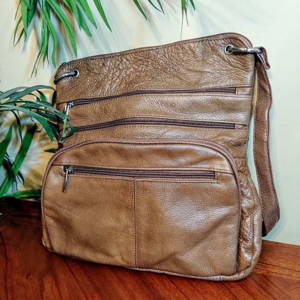 Real leather, slightly used. 4 outside pockets, 4 inner pockets, mobile phone pocket.