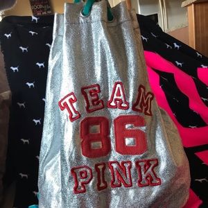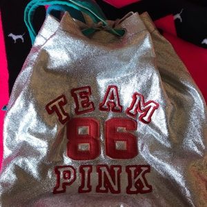 VS PINK RARE METALLIC DRAWSTRING BACKPACK/