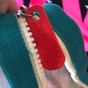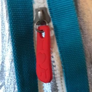 The straps zip up to make one strap or you can unzip it to make use of both straps /EXTREMELY HTF! / NEVER USED - only stored away / Has a few light pen marks on the inside of the bag that were there when purchased /