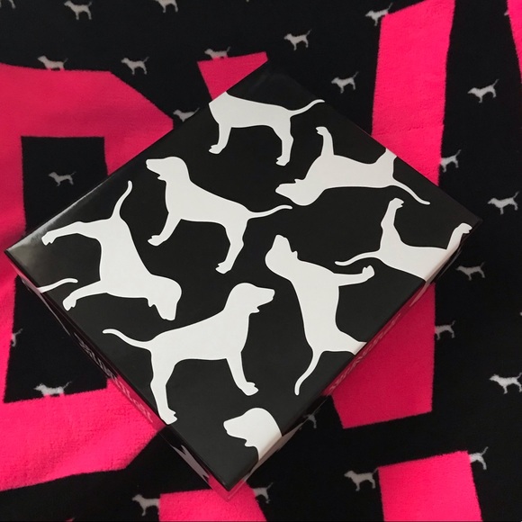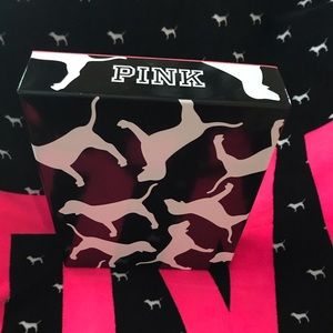VS PINK Pup Collectible Box / The box includes no contents / This is very rare & HTF / The box originally came with a PINK outfit a couple of Christmas’ ago / Never seen another like it / The box is black outlines in pink with white pups 🥰