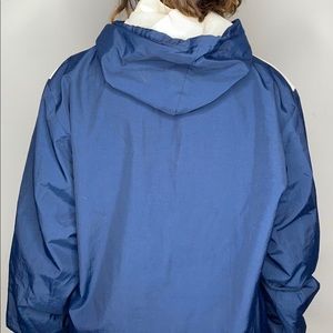 NIKE WINDBREAKER 🏂 Dope navy and white #nike #windbreaker . Has a detachable hood, 2 normal pockets, a zip pocket underneath the “Nike” and can zip open on the left side. Really cool and versatile.