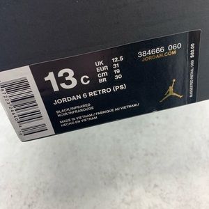 Brand New, 100% Authentic Nike Air Jordan 6 Retro PS Infrared Black 384666-060 Preschool Kids Sneaker.