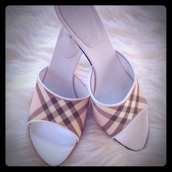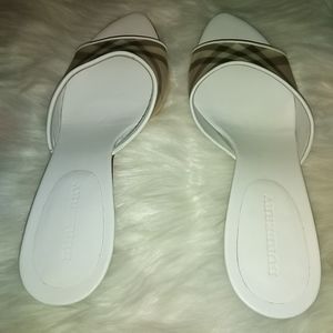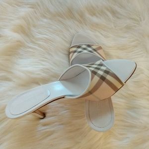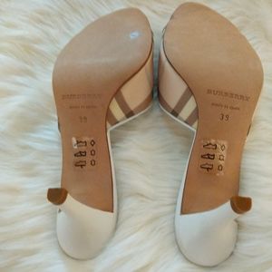 Very nice Brand New "Burberry" slip on heels. Never worn. I'm selling these for some one else. Get these before someone else does! Heel size 3.25". Great Xmas Gift ! No Box!
