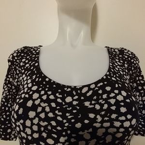 I like the longer short sleeves and the swoop neck. Comfy material