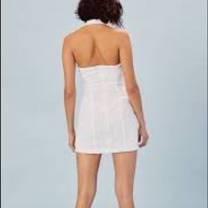 adjustable halter neckline, backless mini with strappy details