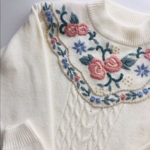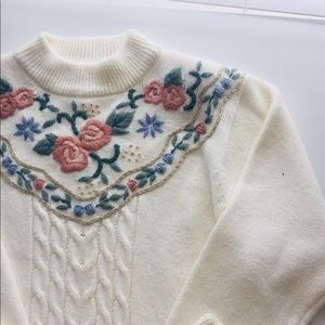 Alfred Dunner Cream Floral Sweater. SIZE L. Runs big. EXCELLENT CONDITION. 80% Acrylic 20% Nylon.