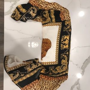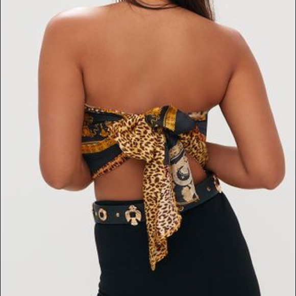 Brand new scarf top from pretty little thing. Versace style print on a silky material. Ties in the back. Perfect for a night out!