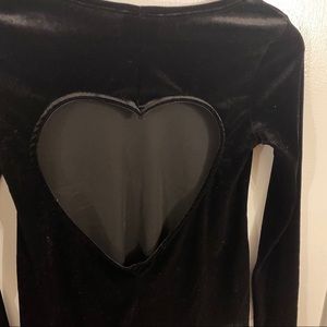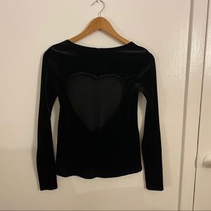 Urban Outfitters Pins + Needles velvet black backless top. Shirt features a large heart cut-out at the back, a cute surprise to enhance any look.