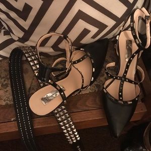 ❌ SOLD ❌ INC BLACK HEELS 7 1/2 AND LEATHER BELT WITH SILVER STUDS SIZE S