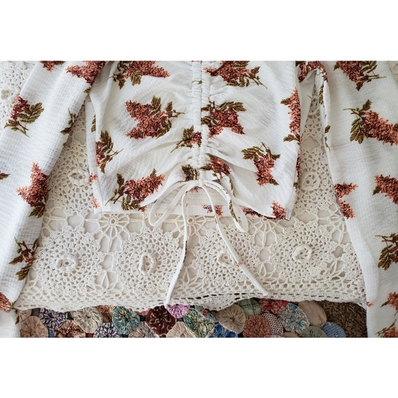 New with tags cinched front croptop with long sleeves Lightweight stretchy material Size 2