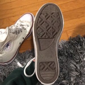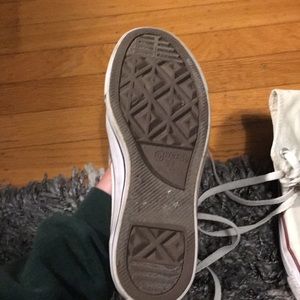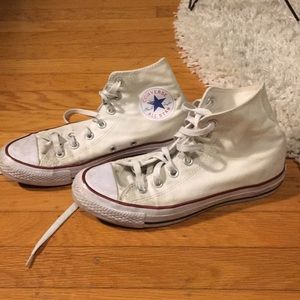 white high top converse, worn a lot but i can clean and in very good shape (women’s 7, men’s 5)