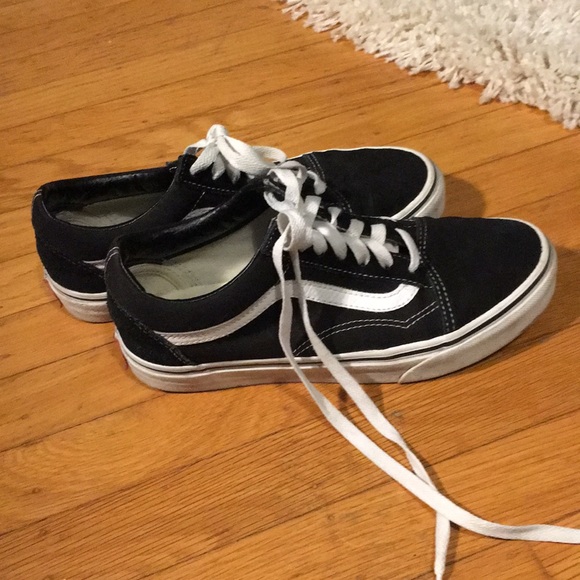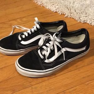 black low top vans, worn a lot but looks somewhat new, in very good shape (women’s 7.5, men’s 6)