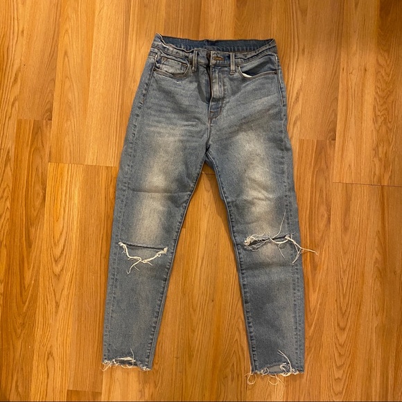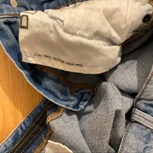 Urban Outfitters BDG twig high-rise grazer light blue distressed jean. Excellent condition, lightly worn, size 27.