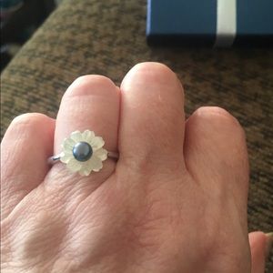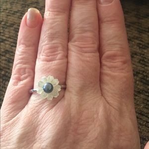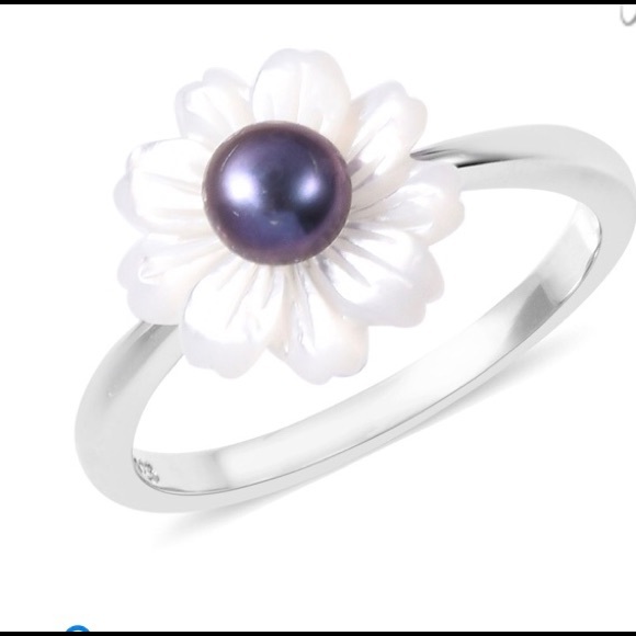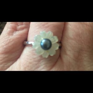 Beautiful peacock pearl ring. With mother of pearl petals. 9.25 sterling silver.