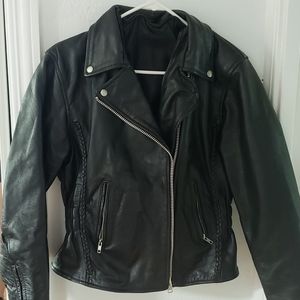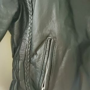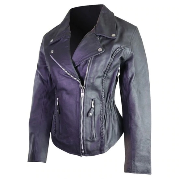 Women's Classic Braided Biker Leather Motorcycle Jacket.