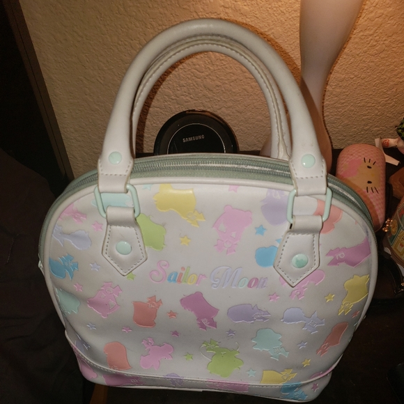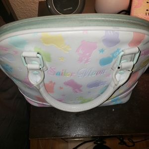 Hot topic exclusive sailor moon bag. used condition, a little stained inside, included pictures for all flaws. Zippers work. Still a great limited and exclusive bag! I have an extra so I'm selling this one!