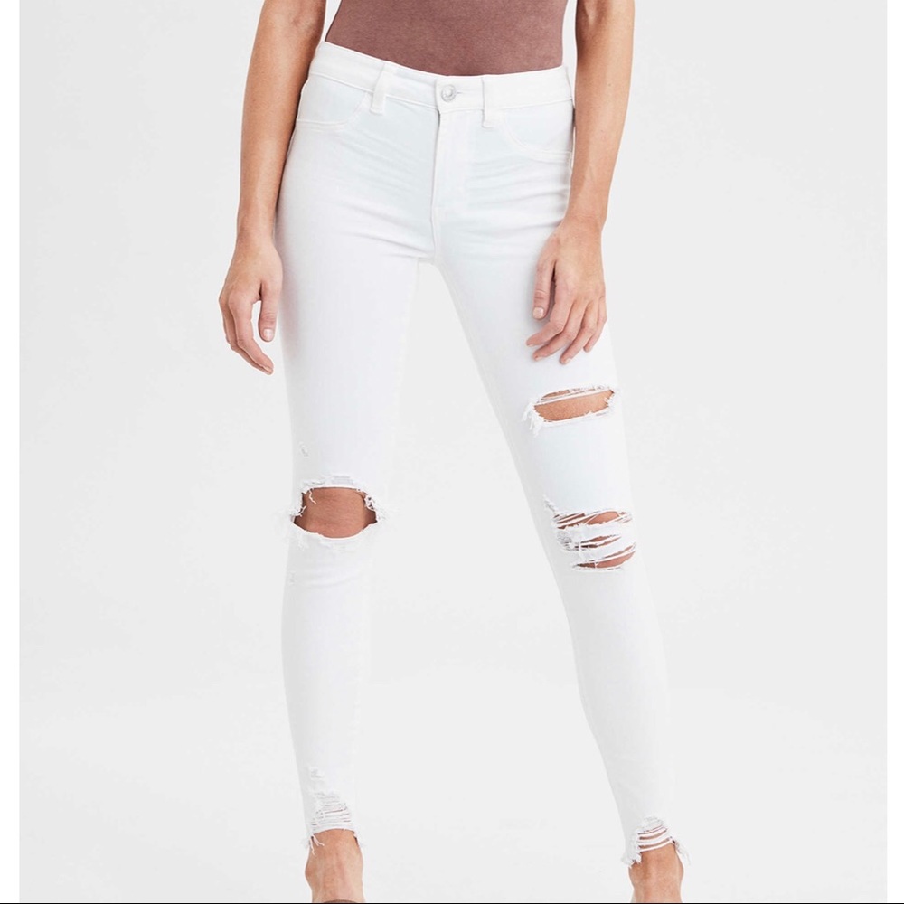 NWT never worn!! White stretchy High-waisted Jeggings with rip detailing.