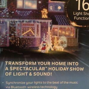 Indoor or outdoor this spectacular 16 light show with sound. You can stream your favorite songs as this is Bluetooth. You can control everything down to the timers by your smart phone.i received 3 of these one I kept, one I donated the last I am selling to recoup a little money. This is phenomenal!!!