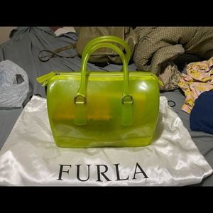 Authentic comes with dust bag n furla lock mine never came with the candy tag ! Preloved bag with a lot of love still left I took pretty good care of it! Attention grabber 30cm w, 20.5 cm h, and 17 cm d this is the large furla candy! Small flaw on handle I believe can be removed