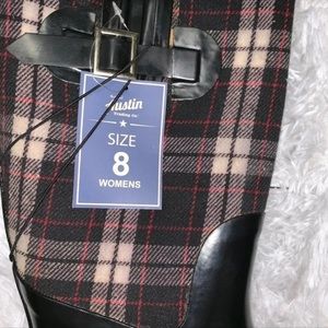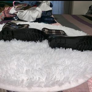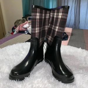 Plaid size 8 rain boots, don’t have tag anymore but never worn!