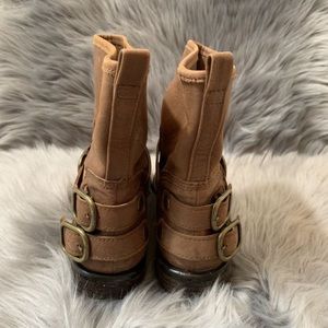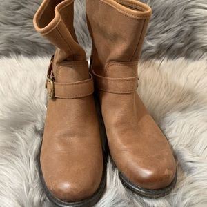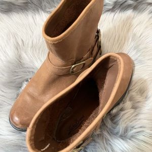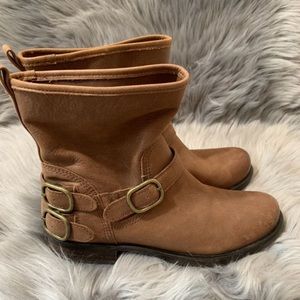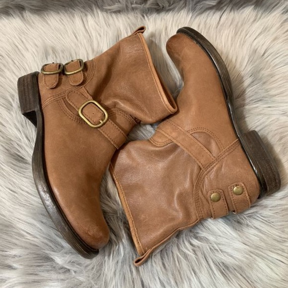 Lucky Brand boots size 8. Distressed ankle boots with buckles. Color is brown tan leather.
