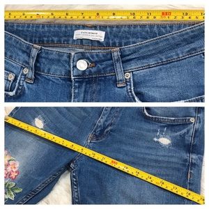 Gorgeous “Face Of A Woman” floral embroidered jeans by Zara Woman’s Premium Denim Collection. Medium rise. Soft, high quality medium blue wash denim. In great condition.