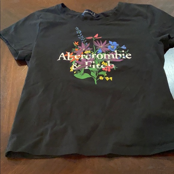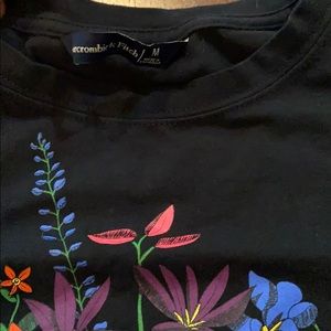 Size M. Black with blue, purple, pink, yellow, orange, and green flowers. Says Abercrombie & Fitch in white. Worn a couple times but great condition.