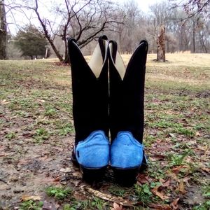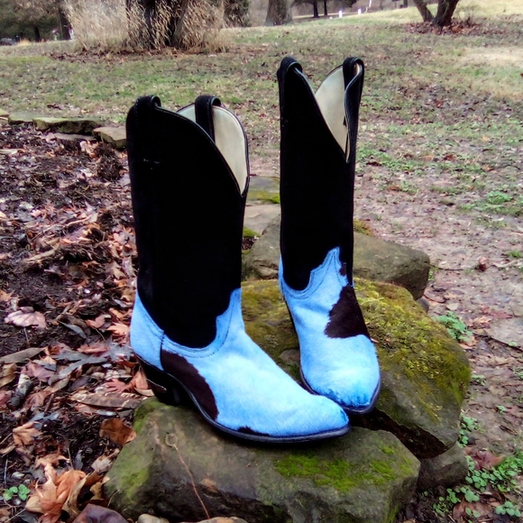 π Baby blue π Vintage "Pony hair" Code West by Dan Post Cowgirl / Cowboy boots, all genuine leather and real hair on hide cowskin.
