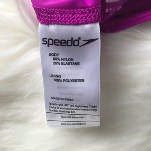 Speedo white embroidery in front of swimsuit: swimwear
