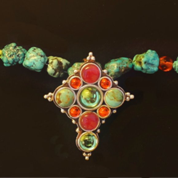 Turquoise and imitation stone necklace. Measures: 16.5 inches long. SOLD