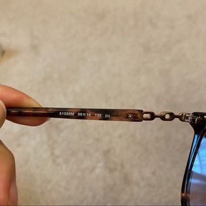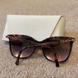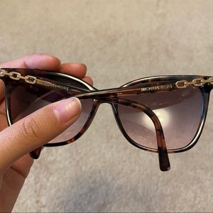 Brown tortoise shell frames. Gold chain accents on the side. Minimal to light scratches on the lenses. Does not affect any vision.