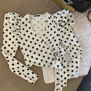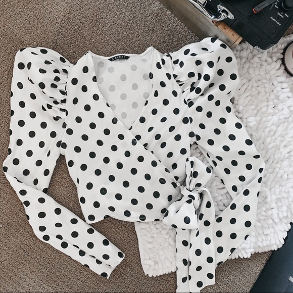 white with black polka dots