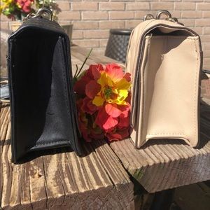 2 Mossimo quilted crossbody bags in beige and black. Both have gold hardware and plenty of space inside. Perfect for a night out or everyday use!