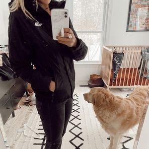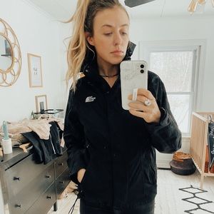 Black north face winter jacket with hood. Warmer than a rain coat! Good used condition.