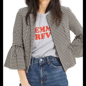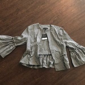 Ruffle trim. Ruffle sleeves. The cutest blazer to dress up any work or luncheon outfit. Never been worn before because I no longer work in an office and have no other setting to wear it in unfortunately!