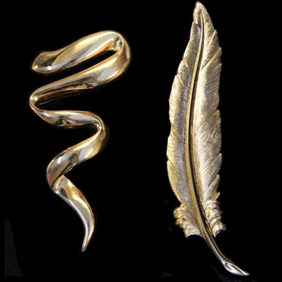 SWIRL: Vintage Gold Leaf Pin/Brooch. Measures: 3".