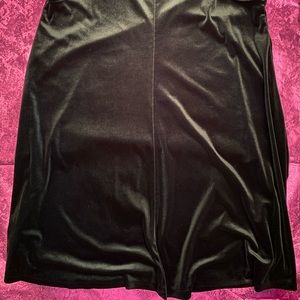 Dark green velvet, all-over one color, knee length, sleeveless, worn rarely